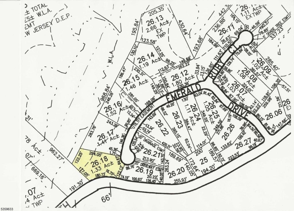 1.33 acre residential building lot at Emerald Estates in Hardyston. Great opportunity to own a homesite and build your dream home in a subdivision located across the street from the Hardyston Middle School and the Hardyston municipal complex which offers a walking path, ball fields and playground. This homesite is located at the end of a cul-de-sac and surrounded by newer existing homes and other new homes currently being built. The property is serviced by natural gas, underground electric, well water and septic plans which are approved.